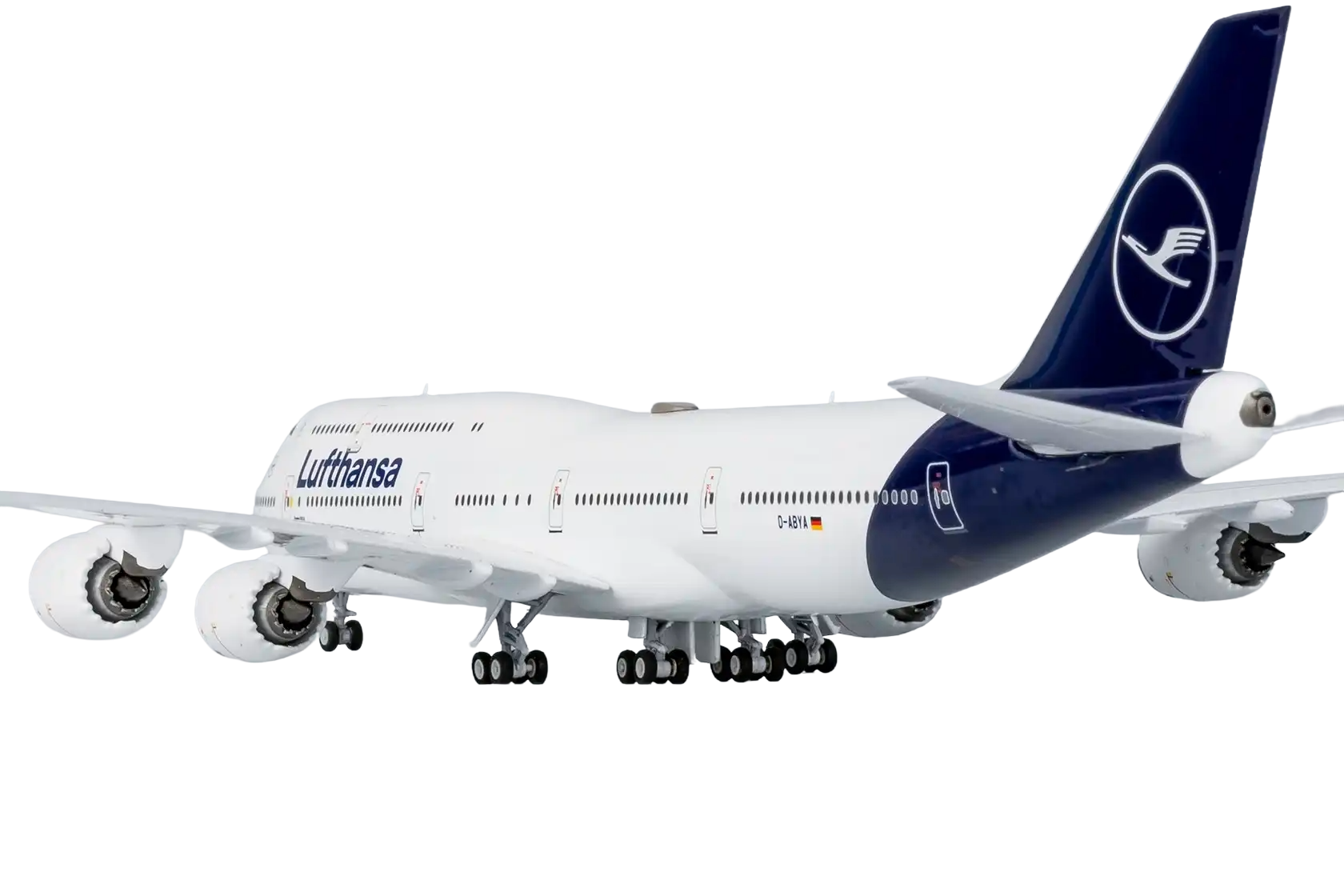 The aircraft serves Lufthansa’s busiest long-range routes, reinforcing the airline’s commitment to sustainability and passenger experience. The 1:400 scale NG Models release faithfully replicates the sleek design and livery of this flagship aircraft, capturing details including its distinctive registration "D-ABYA" and "Brandenburg" name that honors the German state.